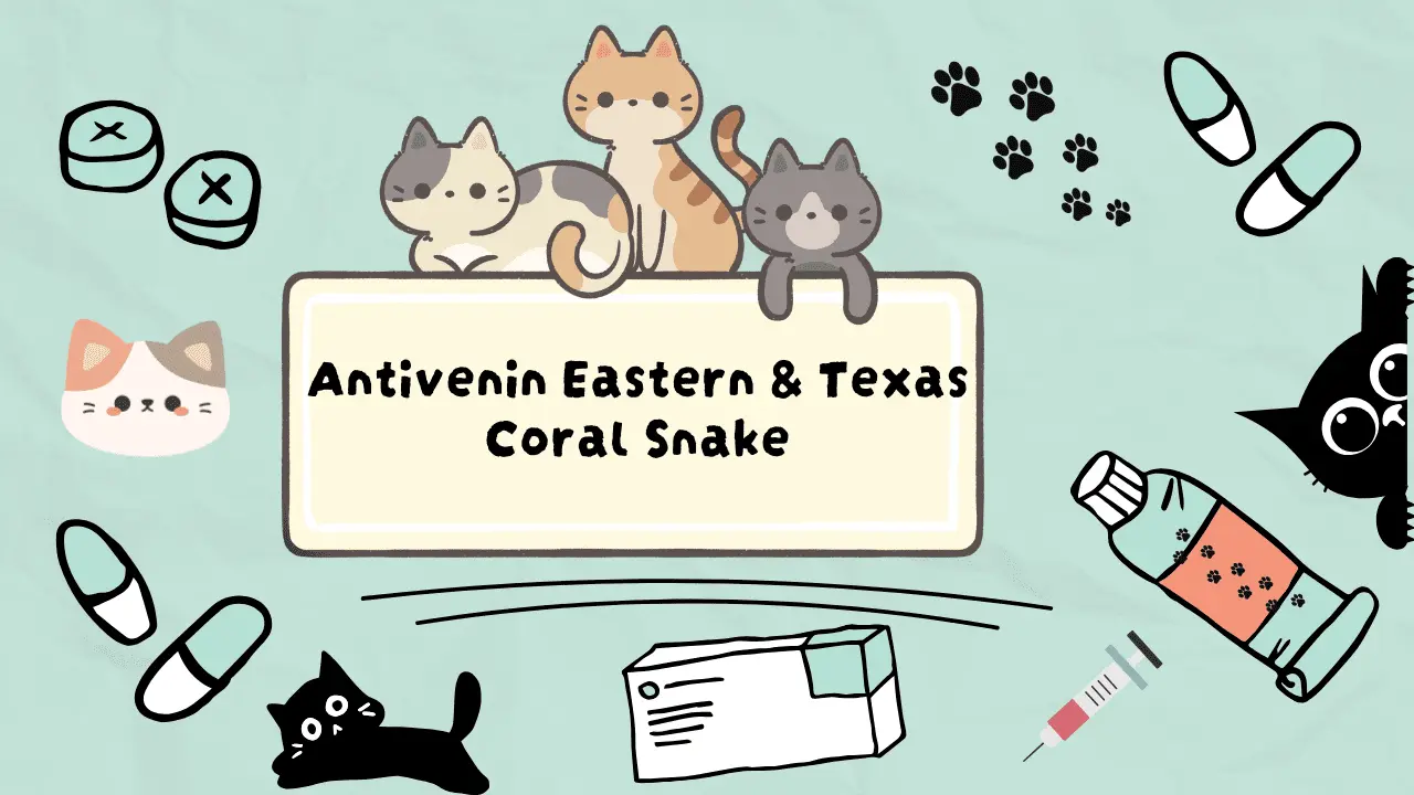يُعدّ مضاد سمّ أفعى الكورال (Antivenin (Micrurus fulvius)) Eastern & Texas Coral Snake أحد أهم الأدوية المنقذة للحياة في حالات تسمّم القطط بلدغات أفعى الكورال الشرقية أو أفعى الكورال تكساس.