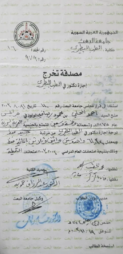 جامعة البعث، حمص، سوريا (دفعة 2003-2004)